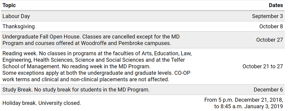 uOTTAWA: IMPORTANT ACADEMIC DATES AND DEADLINES